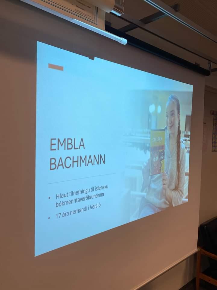 Nemendur í 10. bekk fengu heimsókn í íslensku frá rithöfundinum Emblu Bachmann. Nemendur í 10. bekk fengu heimsókn í íslensku frá rithöfundinum Emblu Bachmann. Þar kynnti hún bókina sína Stelpur stranglega bannaðar en bókin er jafnframt tilnefnd til íslensku bókmenntaverðlauna í flokki barna og ungmennabóka. Embla las brot úr bókinni og sömuleiðis svaraði fjölbreyttum spurningum nemenda. Heimsóknin vakti góðar undirtektir nemenda. Embla er sú yngsta í sögunni til að hljóta tilnefningu til íslensku bókmenntaverðlaunanna, en hún er 17 ára gömul. Deila Tísta