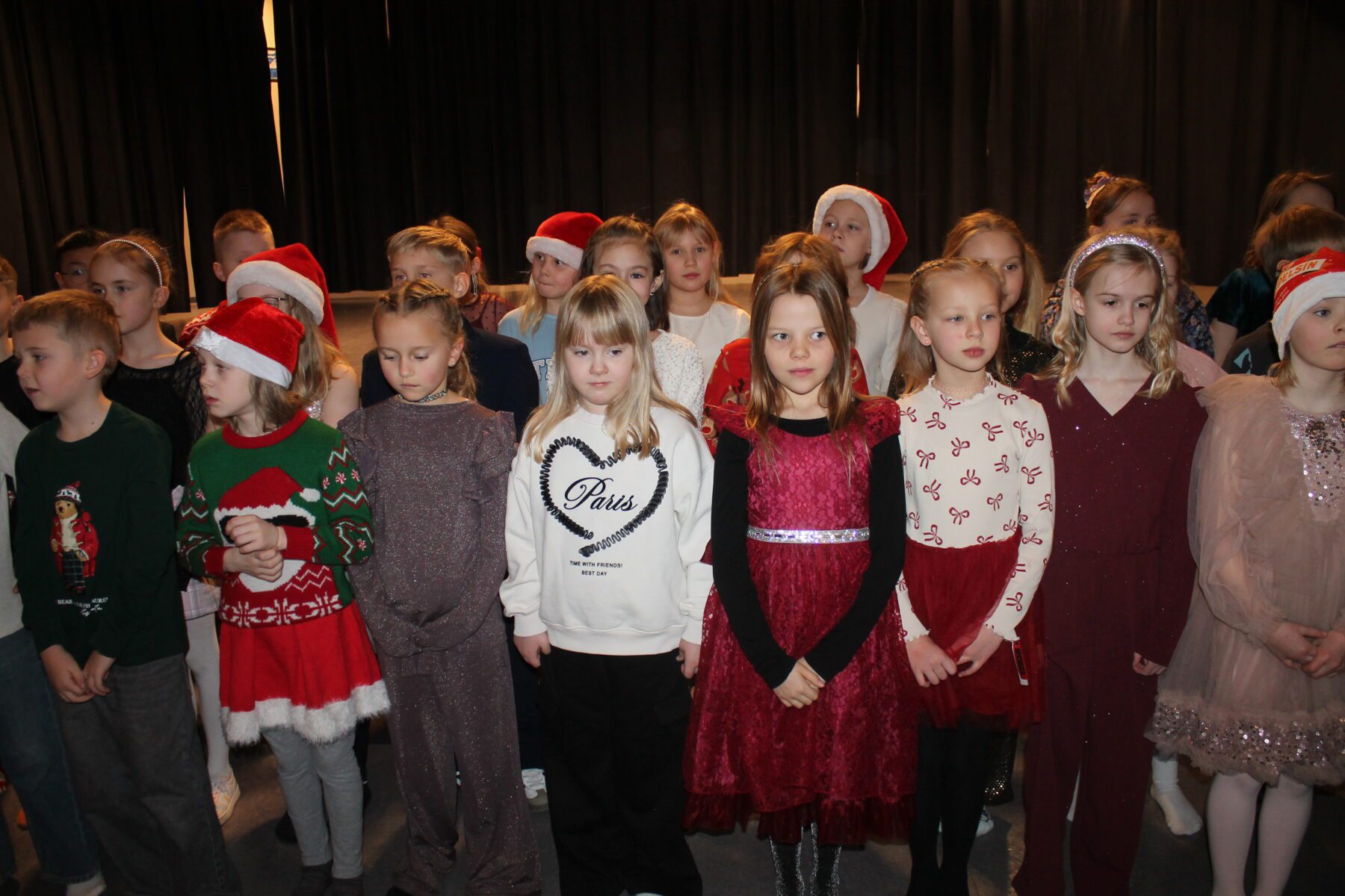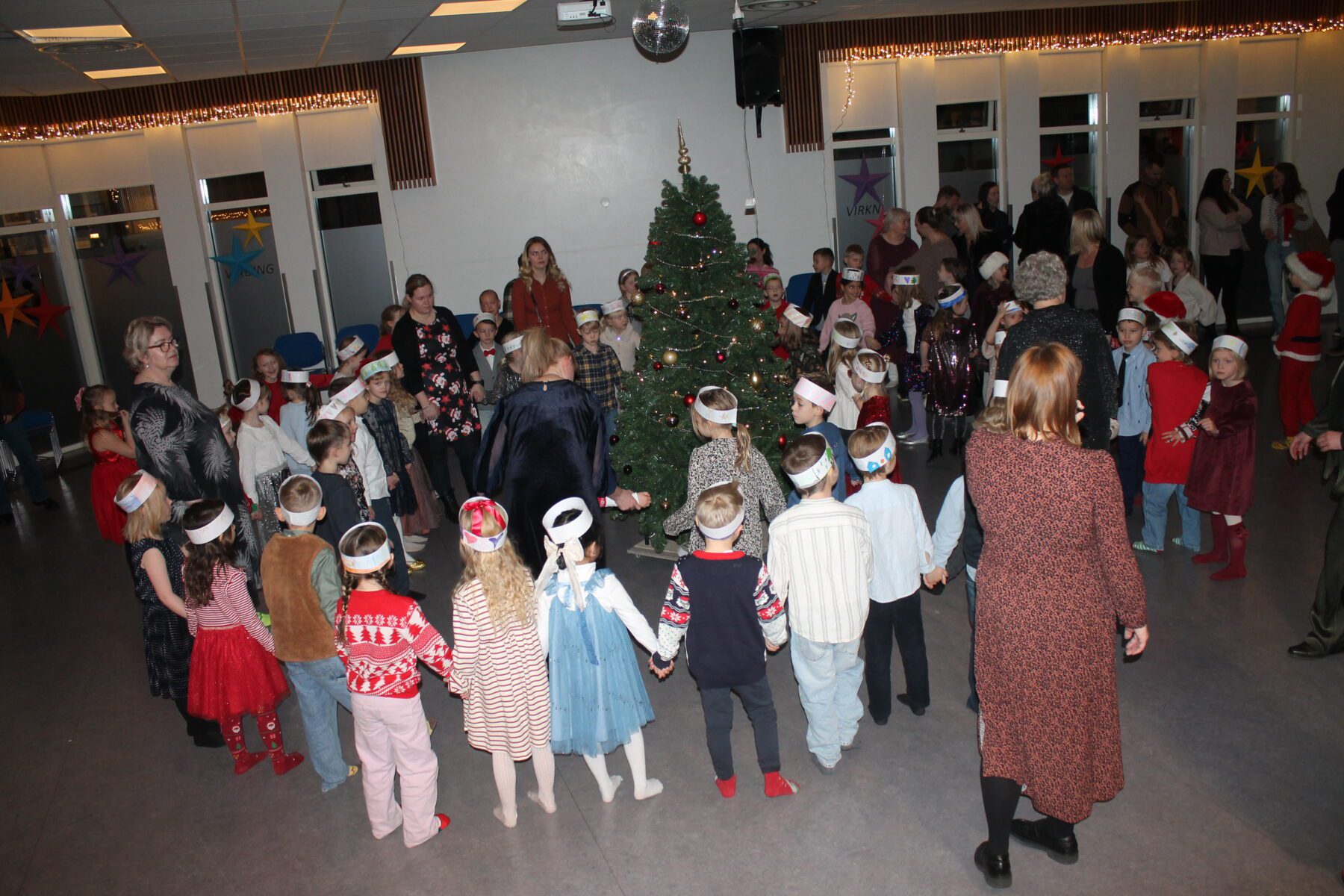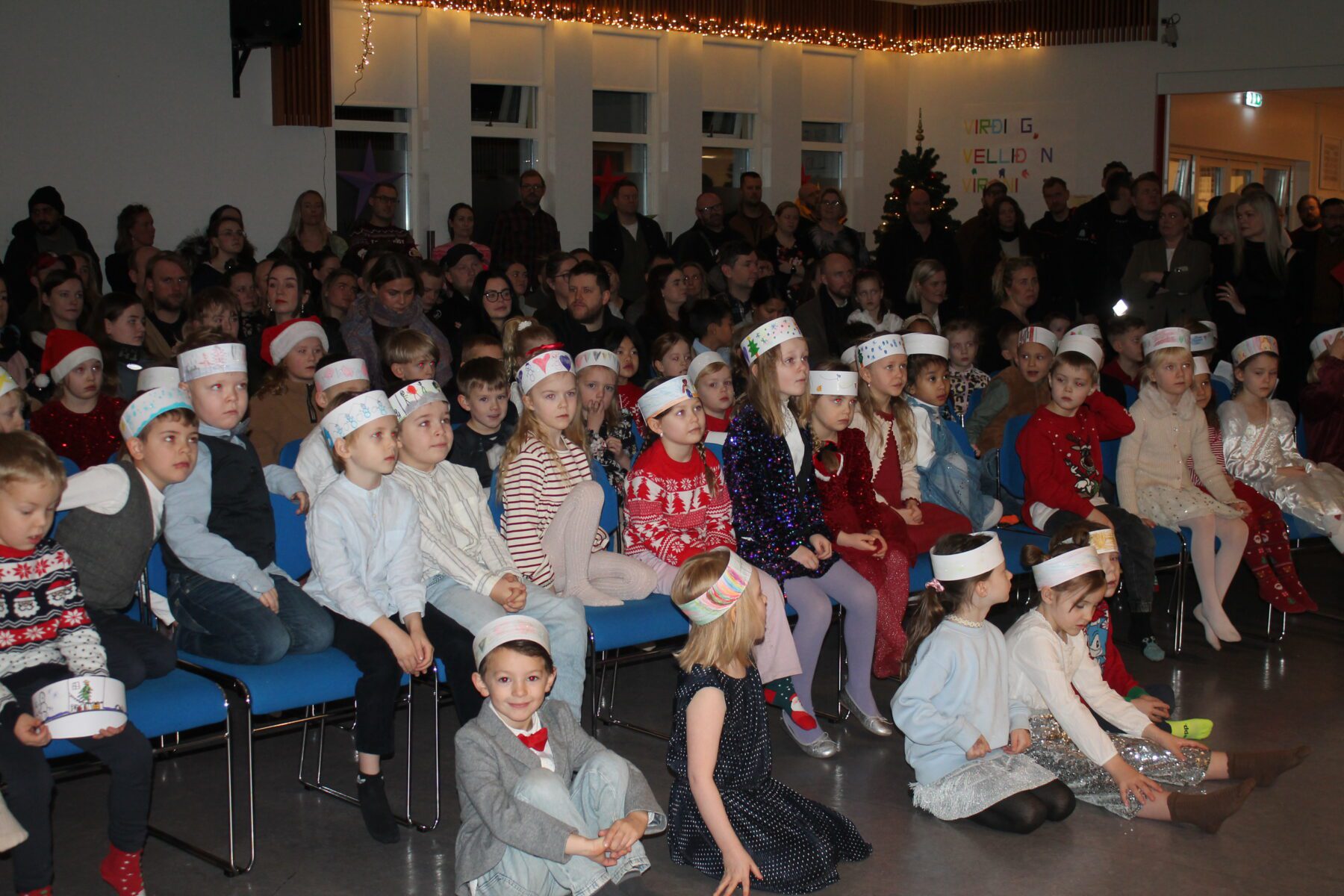 Í dag komu nemendur í 1. – 4. bekk saman á sal ásamt foreldrum sínum og héldu jólaskemmtun. Litli kór söng, árgangar sýndi ýmsis skemmtiatriði og í lokin var dansað í kringum jólatréð. Deila Tísta
