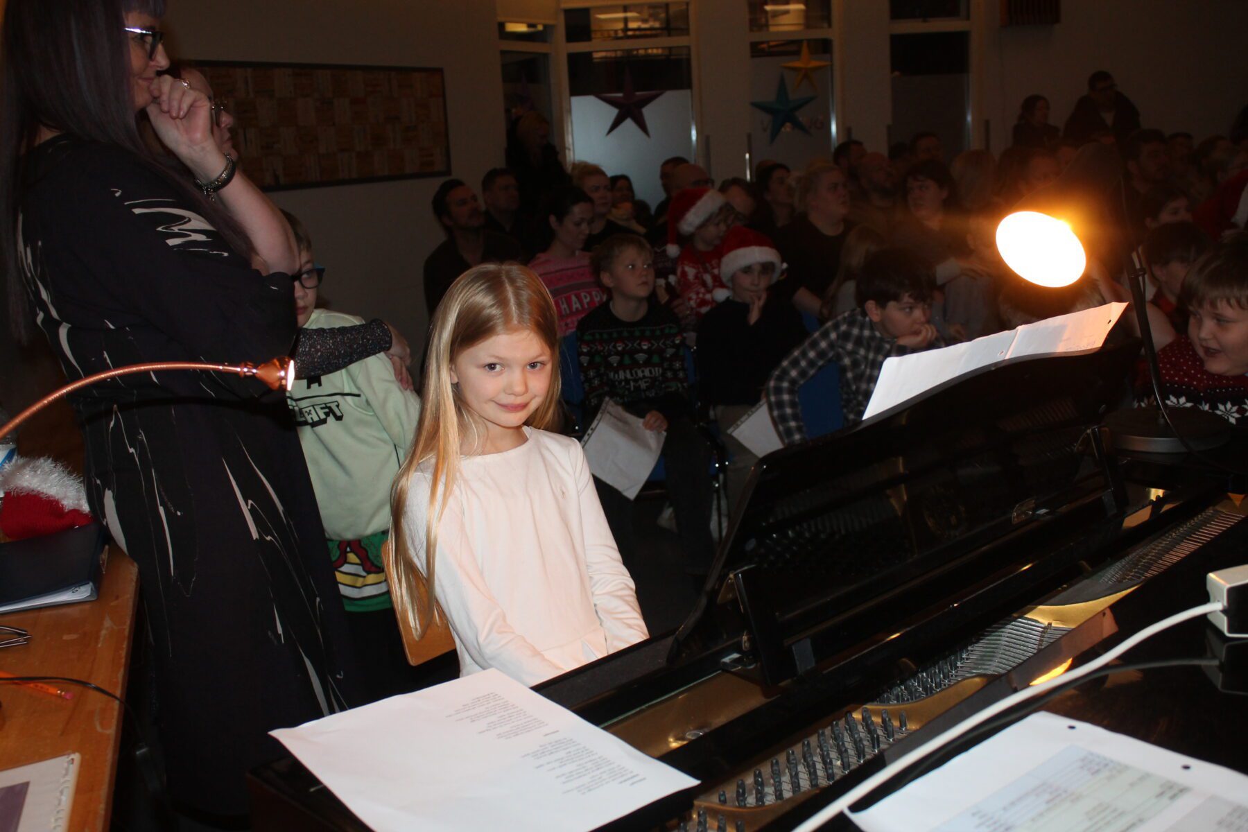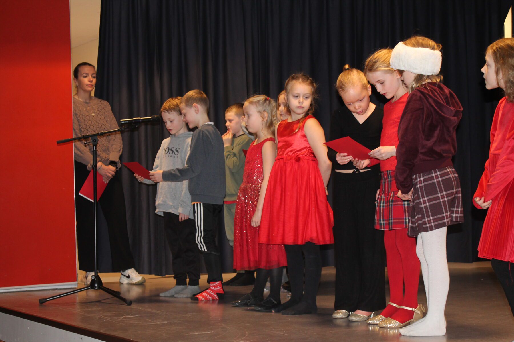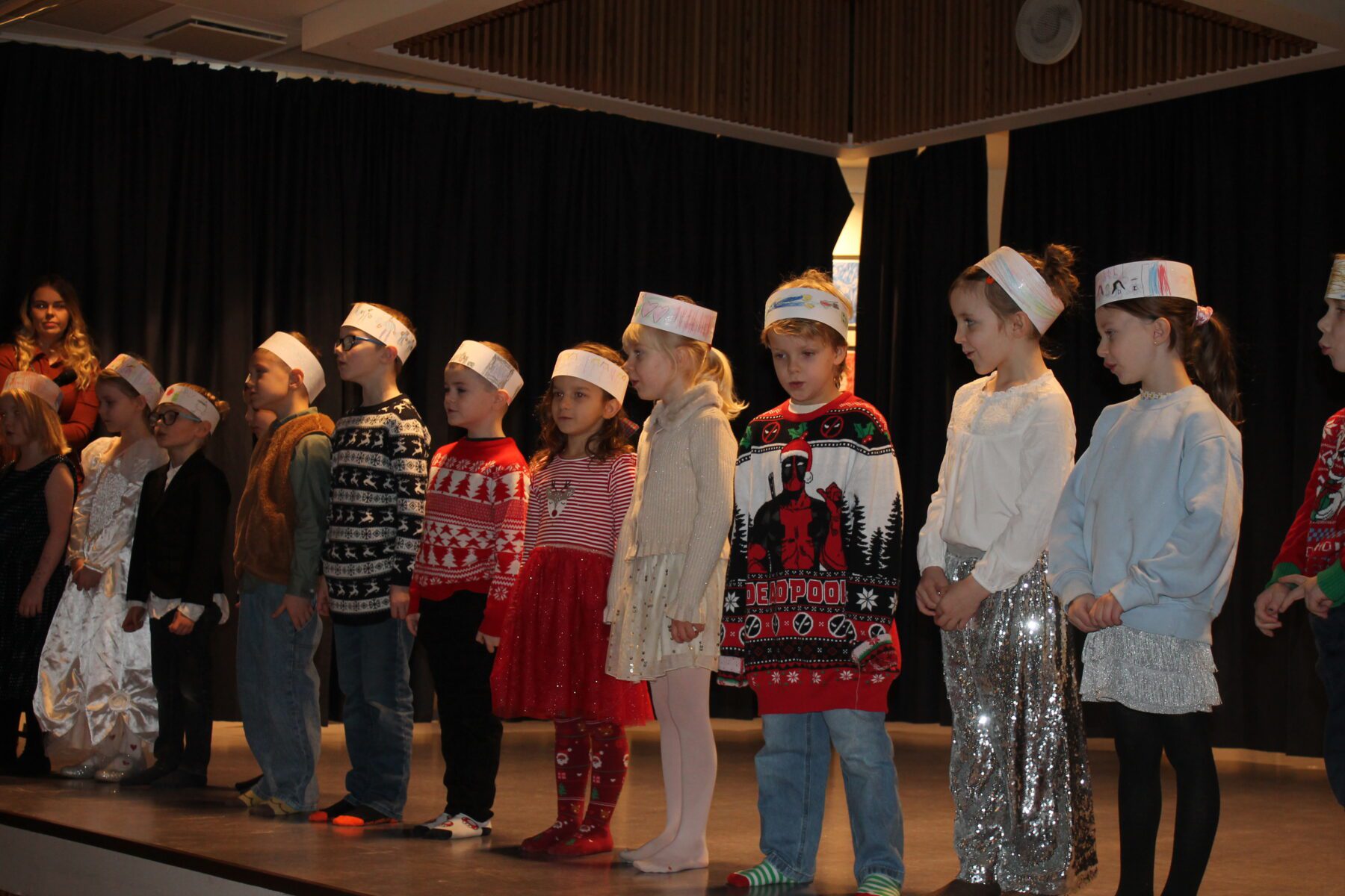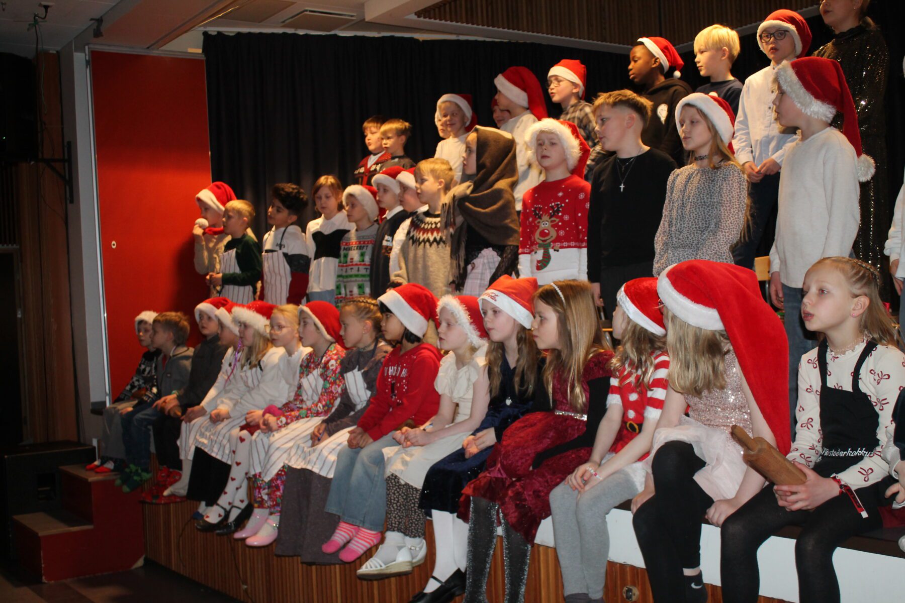 Í dag komu nemendur í 1. – 4. bekk saman á sal ásamt foreldrum sínum og héldu jólaskemmtun. Litli kór söng, árgangar sýndi ýmsis skemmtiatriði og í lokin var dansað í kringum jólatréð. Deila Tísta