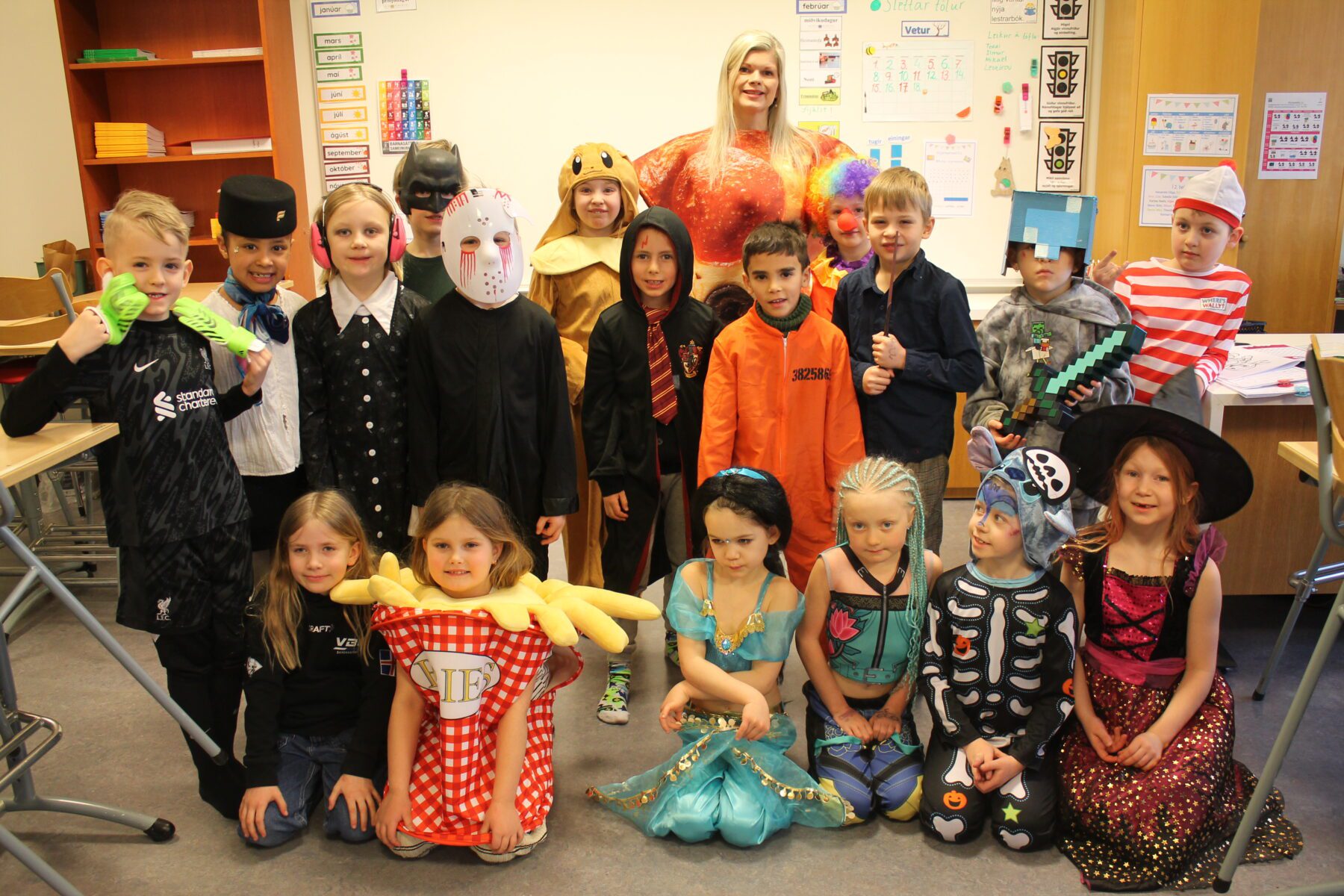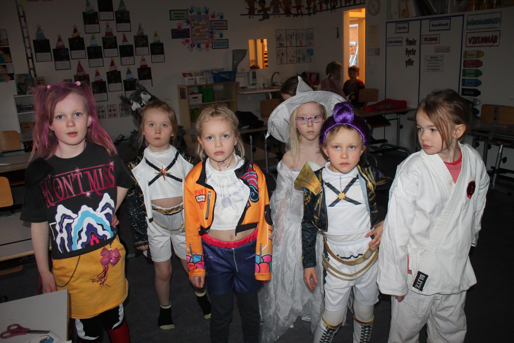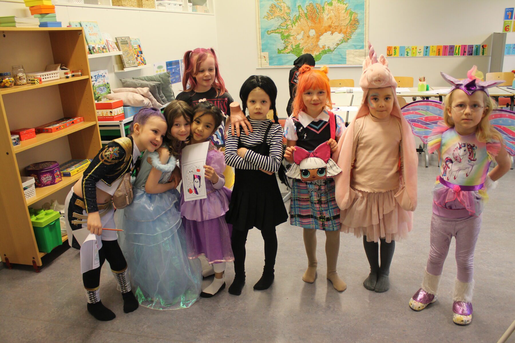 Öskudagur í Öldutúnsskóla, allskonar verur á ferð.