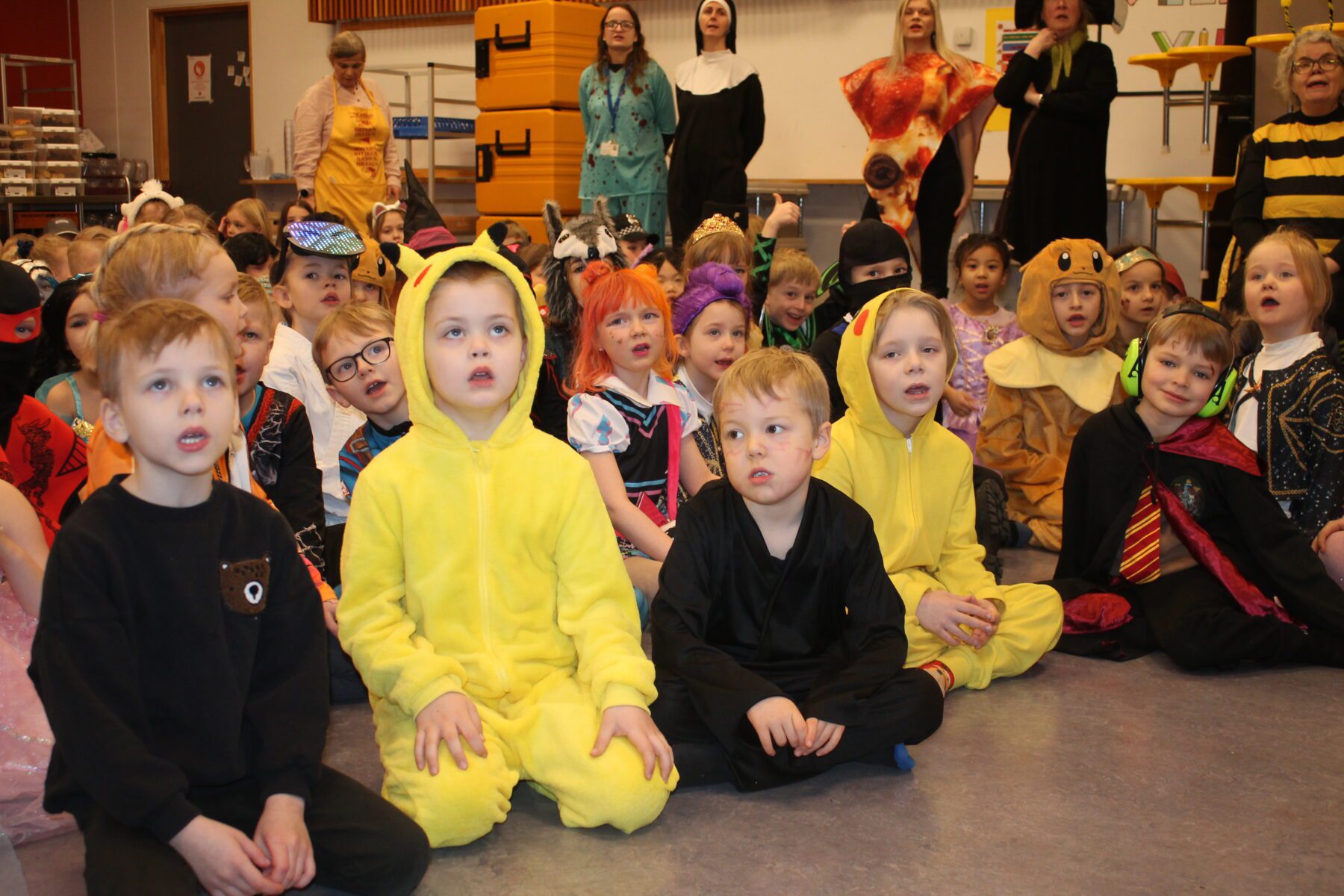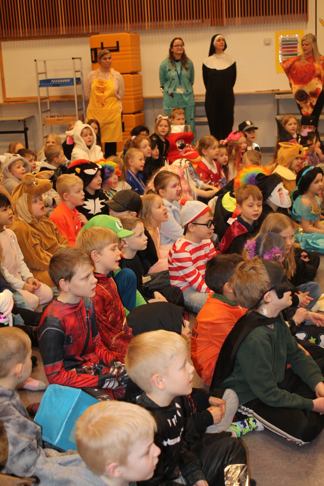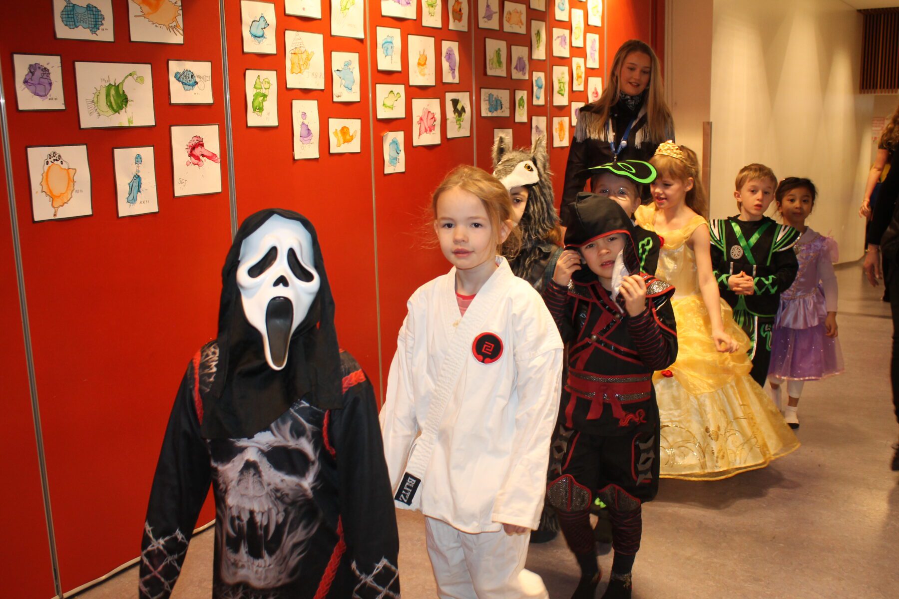 Öskudagur í Öldutúnsskóla, allskonar verur á ferð.
