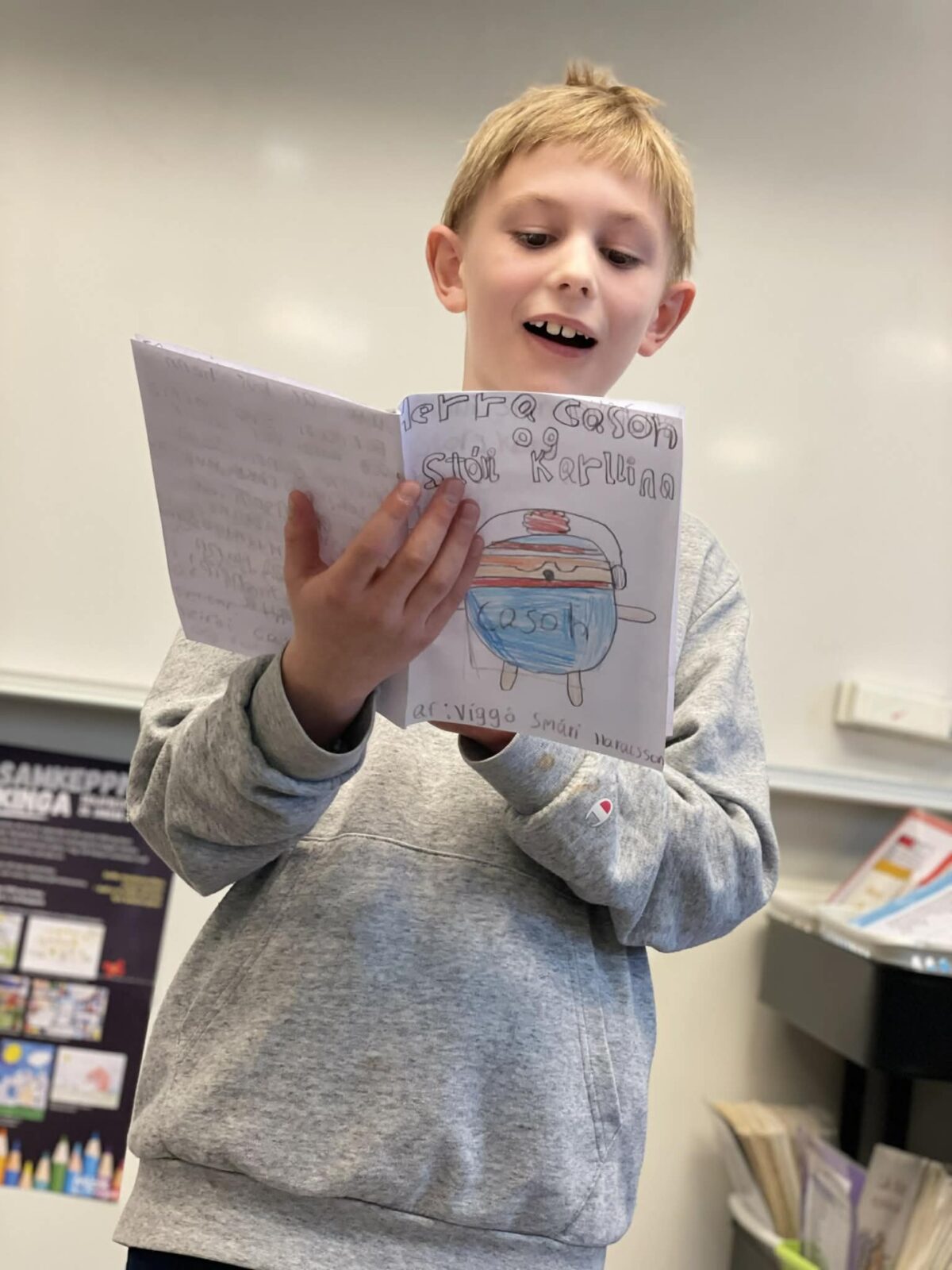 Krakkarnir í 4.K hefur hafa verið að vinna íslenskuverkefni, en þau áttu að búa til bók um herra mann eða ungfrú. Um daginn var fyrsta kynning höfunda. Deila Tísta