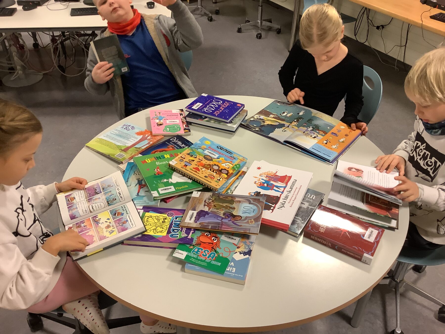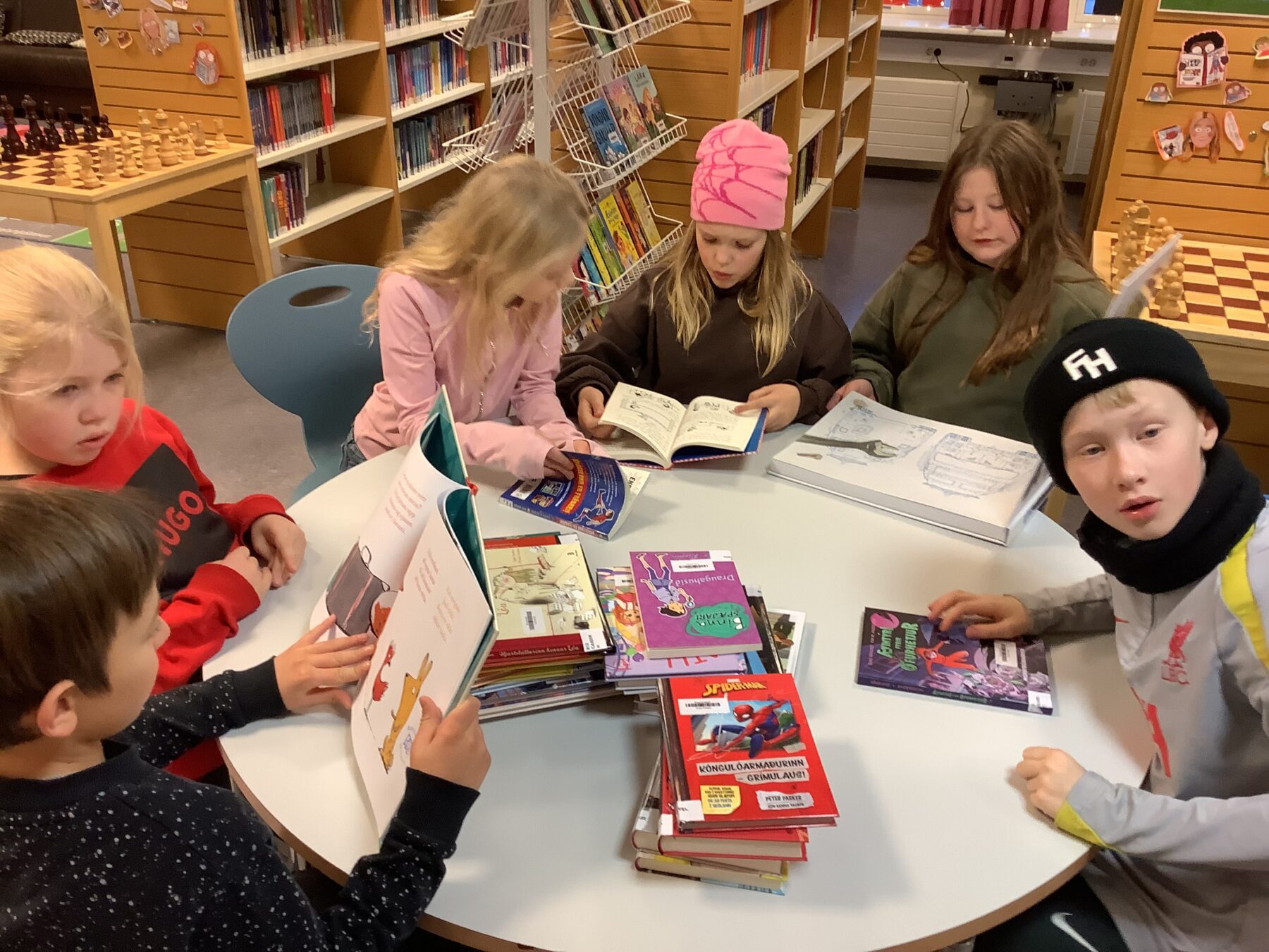 Nemendur hafa komið í heimsókn á skólasafnið og fengið að skoða nýju bækurnar sem koma út þetta árið. Skemmtileg og gefandi stund. Deila Tísta
